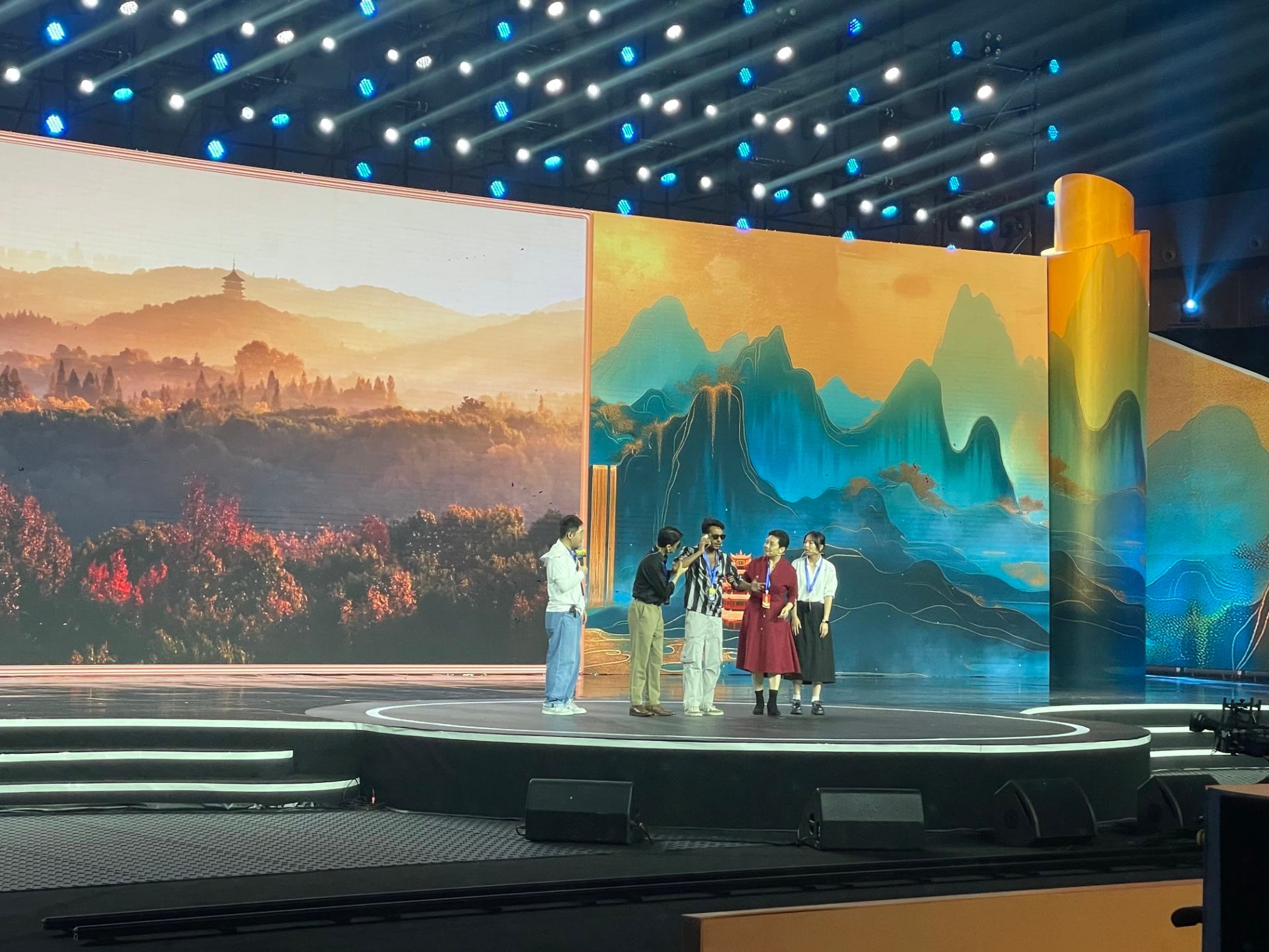 在模拟带团环节,我校郭静老师指导学生周梓涵、杨明烨与国际留学生协作,生动模拟多场旅游场景。同学们沉着应对、表达清晰、配合默契,真实还原涉外导游带团情境,出色表现获评委与观众一致好评。