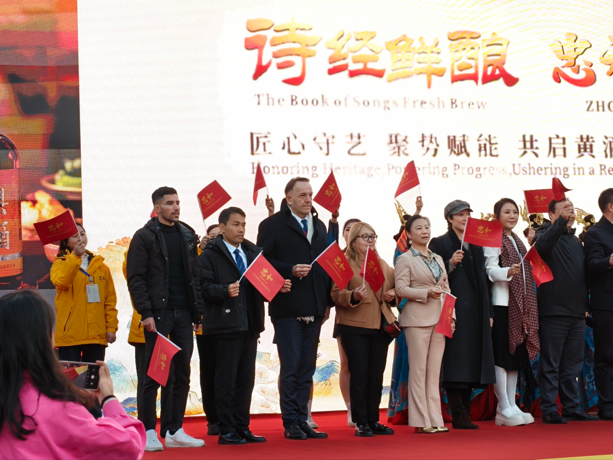 我校留学生以黄酒广告语为绕口令宣介房县黄酒,现场气氛热烈。法国工商会会长Xavier Michon Lehnebach发表致辞,并与我校留学生进行了亲切交谈,表示希望学生发挥个人力量,融入房县黄酒文化,为黄酒走向国际化、走向世界助力。当千年酿造技艺与现代科技交融碰撞,当古老酒香邂逅国际供应链,房县黄酒不仅探索出一条立足本地的特色产业发展路径,更为整个黄酒行业开辟破局前行的新航道。