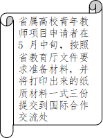 3.申请人申请国家留学基金委项目、地方合作项目时,均需提交国外大学或科研机构的邀请函及导师简介,邀请函的时间必须为6-12个月;申请省属高校青年教师项目时,有邀请函的同等条件优先录取(但出国前也必须获得邀请函)。